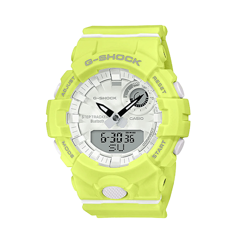 Mẫu sản phẩm thứ hai được đề cử cho bạn hôm nay là một chiếc đồng hồ G-Shock với sắc xanh chuối không thể lẫn vào đâu được của GMA-B800-9ADR. Đây là một sản phẩm thuộc dòng đồng hồ Casio G-SQUAD với kiểu dáng tương đối gọn nhẹ và khỏe khoắn bởi kích thước của phần vỏ đã được giảm đi 3mm so với các sản phẩm trước đó.